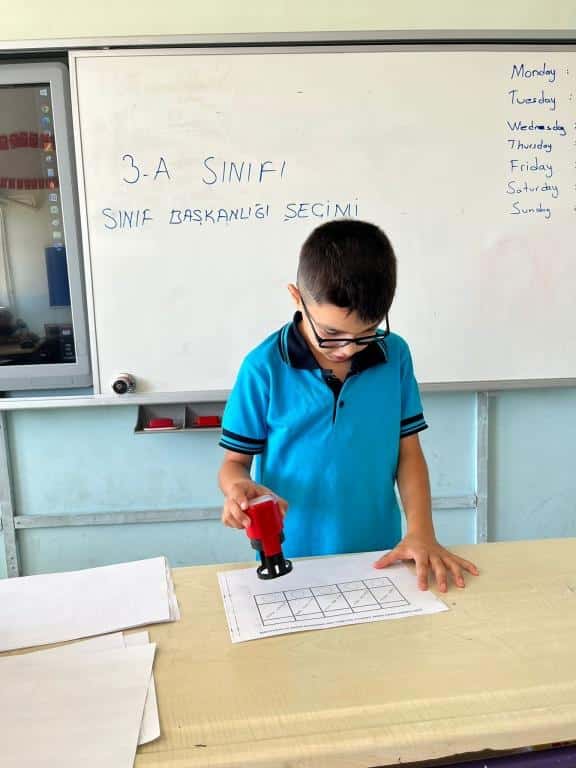 Yeni eğitim öğretim yılının başlamasıyla sınıflarımız yeniden doldu. Coşku yine zirvede. Sınıflarımızda başkanlık seçimi çalışmaları da başladı. Her sınıf kendi içinde başkan adaylarını belirleyip kendilerini arkadaşlarına tanıtıyorlar. Süreci tamamlayan sınıflarımız seçim ile başkanlarını belirliyorlar.